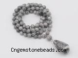 Details: Hand-knotted jasper mala necklaces: 108 8mm/10mm round grey picture jasper beads with fossil jasper pendant/12mm guru bead and fossil jasper pendant (you can choose different pendants, but there will be tiny different in shape & color, we will make the jewelry randomly according to our stock) Item: GMN4922 Material: No.1: 8mm: 108 8mm grey picture jasper beads & fossil jasper pendant 10mm: 108 10mm grey picture jasper beads & fossil jasper pendant No.2: 8mm: 108 8mm grey picture jasper beads, 12mm guru bead & fossil jasper pendant 10mm: 108 10mm grey picture jasper beads, 12mm guru bead & fossil jasper pendant Color: See image Length (inch): Necklace length: 8mm: approx 37 - 40 inches (Not including guru bead & pendant) 10mm: approx 46 - 50 inches (Not including guru bead & pendant) Pendants: approx 18*35mm - 28*40mm Quantity Discount Pricing: 1 - 4: None 5 - 49: 95% 50 - 99: 90% 100+: 85% This mala is available in both 8mm and 10mm beads, The listed price is for 1 piece 8mm mala necklace