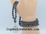 Details: Hand-knotted labradorite mala necklaces: 108 8mm/10mm round matte black labradorite beads with black rutilated quartz pendant/12mm guru bead and black rutilated quartz pendant (you can choose different pendants, but there will be tiny different in shape & color, we will make the jewelry randomly according to our stock) Item: GMN5023 Material: No.1: 8mm: 108 8mm matte black labradorite beads & black rutilated quartz pendant 10mm: 108 10mm matte black labradorite beads & black rutilated quartz pendant No.2: 8mm: 108 8mm matte black labradorite beads, 12mm guru bead & black rutilated quartz pendant 10mm: 108 10mm matte black labradorite beads, 12mm guru bead & black rutilated quartz pendant Color: See image Length (inch): Necklace length: 8mm: approx 37 - 40 inches (Not including guru bead & pendant) 10mm: approx 46 - 50 inches (Not including guru bead & pendant) Pendants: approx 18*35mm - 28*40mm Quantity Discount Pricing: 1 – 4: None 5 – 49: 95% 50 – 99: 90% 100+: 85% This mala is available in both 8mm and 10mm beads, The listed price is for 1 piece 8mm mala necklace