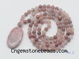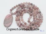 GMN4600 Hand-knotted 8mm, 10mm cherry quartz 108 beads mala necklace with pendant