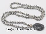 Details: Hand-knotted jasper mala necklaces: 108 8mm/10mm round dalmatian jasper beads with smoky quartz pendant/12mm guru bead and smoky quartz pendant (you can choose different pendants, but there will be tiny different in shape & color, we will make the jewelry randomly according to our stock) Item: GMN5165 Material: No.1: 8mm: 108 8mm dalmatian jasper beads & smoky quartz pendant 10mm: 108 10mm dalmatian jasper beads & smoky quartz pendant No.2: 8mm: 108 8mm dalmatian jasper beads, 12mm guru bead & smoky quartz pendant 10mm: 108 10mm dalmatian jasper beads, 12mm guru bead & smoky quartz pendant Color: See image Length (inch): Necklace length: 8mm: approx 37 - 40 inches (Not including guru bead & pendant) 10mm: approx 46 - 50 inches (Not including guru bead & pendant) Pendants: approx 32*47mm Quantity Discount Pricing: 1 - 4: None 5 - 49: 95% 50 - 99: 90% 100+: 85% This mala is available in both 8mm and 10mm beads, The listed price is for 1 piece 8mm mala necklace