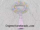 Details: Hand-knotted candy jade mala necklaces: 108 8mm round candy jade beads with 1 12mm guru bead and satin tassel (you can choose different colors) Item: GMN52 Material: Candy jade & Satin tassel Color: See image Length (inch): Necklace length: approx 38 - 41 inches(Not including guru bead & tassel) Tassel Lenght: 7cm Quantity Discount Pricing: 1 – 4: None 5 – 49: 95% 50 – 99: 90% 100+: 85% The listed price is for 1 piece necklace The color, size & quality of the product may vary, we will send your orders randomly according to our stock. We also accept custom service/special order, if you have any need, please contact us before you placing order or leave remark. Mala necklace is worn on the neck or wrist while not in use. It may also serve as a nice accessory in everyday life or on some special occasions.