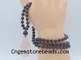 Details: Hand-knotted quartz mala necklaces: 108 8mm/10mm round garnet beads with rose quartz pendant/12mm guru bead and rose quartz pendant (you can choose different pendants, but there will be tiny different in shape & color, we will make the jewelry randomly according to our stock) Item: GMN5200 Material: No.1: 8mm: 108 8mm garnet beads & rose quartz pendant 10mm: 108 10mm garnet beads & rose quartz pendant No.2: 8mm: 108 8mm garnet beads, 12mm guru bead & rose quartz pendant 10mm: 108 10mm garnet beads, 12mm guru bead & rose quartz pendant Color: See image Length (inch): Necklace length: 8mm: approx 37 - 40 inches (Not including guru bead & pendant) 10mm: approx 46 - 50 inches (Not including guru bead & pendant) Pendants: approx 26*50mm Quantity Discount Pricing: 1 – 4: None 5 – 49: 95% 50 – 99: 90% 100+: 85% This mala is available in both 8mm and 10mm beads, The listed price is for 1 piece 8mm mala necklace