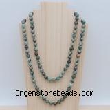 Details: Hand-knotted turquoise mala necklaces: 8mm/10mm round African turquoise gemstone beaded necklaces Item: GMN539 Material: No.1: 108 8mm African turquoise beads No.2: 108 10mm African turquoise beads Color: See image Length (inch): No.1(8mm: approx 37 - 40 inches No.2(10mm: approx 46 - 50 inches Quantity Discount Pricing: 1 – 4: None 5 – 49: 95% 50 – 99: 90% 100+: 85% This mala is available in both 8mm and 10mm beads, The listed price is for 1 piece 8mm mala necklace