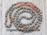 Details: Hand-knotted jasper mala necklaces: 108 8mm/10mm round dalmatian jasper, cherry quartz & plated hematite beaded necklaces Item: GMN6447 Material: No.1(8mm: dalmatian jasper, cherry quartz & plated hematite beads No.2(10mm: dalmatian jasper, cherry quartz & plated hematite beads Color: See image Length (inch): Necklace length: 8mm: approx 37 - 40 inches 10mm: approx 46 - 50 inches Quantity Discount Pricing: 1 – 4: None 5 – 49: 95% 50 – 99: 90% 100+: 85% This mala is available in both 8mm and 10mm beads, The listed price is for 1 piece 8mm mala necklace