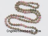 Details: Hand-knotted jasper mala necklaces: 108 8mm/10mm round matte unakite, matte pink wooden jasper & plated hematite beaded necklaces Item: GMN6448 Material: No.1(8mm: matte unakite, matte pink wooden jasper & plated hematite beads No.2(10mm: matte unakite, matte pink wooden jasper & plated hematite beads Color: See image Length (inch): Necklace length: 8mm: approx 37 - 40 inches 10mm: approx 46 - 50 inches Quantity Discount Pricing: 1 – 4: None 5 – 49: 95% 50 – 99: 90% 100+: 85% This mala is available in both 8mm and 10mm beads, The listed price is for 1 piece 8mm mala necklace