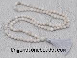 Details: Hand-knotted agate mala necklaces: 108 8mm/10mm round white crazy lace agatebeads with 1 12mm guru bead and satin tassel (you can choose different colors) Item: GMN663 Material: No.1: 108 8mm white crazy lace agate beads, 12mm guru bead & satin tassel No.2: 108 10mm white crazy lace agate beads, 12mm guru bead & satin tassel Color: See image Length (inch): Necklace length: No.1(8mm: approx 38 - 41 inches (Not including guru bead & tassel) No.2(10mm: approx 47 - 50 inches (Not including guru bead & tassel) Tassel Lenght: 7cm Quantity Discount Pricing: 1 – 4: None 5 – 49: 95% 50 – 99: 90% 100+: 85% This mala is available in both 8mm and 10mm beads, The listed price is for 1 piece 8mm mala necklace