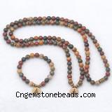 Details: Meditation Jewelry: 108 8mm picasso jasper beads healing gemstone necklace/wrap bracelet for yoga/prayer Item: GMN7018 Material: 8mm picasso jasper, alloy spacer beads & alloy pendant (You can choose different style and charm set, we will use the same color spacer beads according to the charm set you choose) Color: See image Length (inch): Necklace length: approx 35 - 38 inches (Not including charm) Bracelet length: You can choose 6.5 inches; 7 inches; 7.5 inches; 8 inches or 8.5 inches Quantity Discount Pricing: 1 – 4: None 5 – 49: 95% 50 – 99: 90% 100+: 85% The listed price is for 1 piece 108 beads mala necklace, if you also like the bracelet, please add