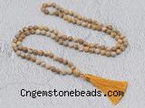 Details: Hand-knotted jasper mala necklaces: 108 8mm/10mm round picture jasper beads with 1 12mm guru bead and satin tassel (you can choose different colors) Item: GMN707 Material: No.1: 108 8mm picture jasper beads, 12mm guru bead & satin tassel No.2: 108 10mm picture jasper beads, 12mm guru bead & satin tassel Color: See image Length (inch): Necklace length: No.1(8mm: approx 38 - 41 inches (Not including guru bead & tassel) No.2(10mm: approx 47 - 50 inches (Not including guru bead & tassel) Tassel Lenght: 7cm Quantity Discount Pricing: 1 – 4: None 5 – 49: 95% 50 – 99: 90% 100+: 85% This mala is available in both 8mm and 10mm beads, The listed price is for 1 piece 8mm mala necklace
