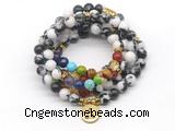 GMN7083 Chakra 8mm white howlite & lapis lazuli 108 mala beads wrap bracelet necklaces
