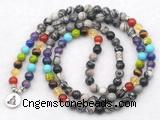GMN7094 7 Chakra 8mm picture jasper 108 mala beads wrap bracelet necklaces
