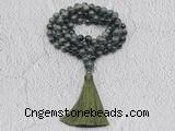 Details: Hand-knotted jasper mala necklaces: 108 8mm/10mm round kambaba jasper beads with 1 12mm guru bead and satin tassel (you can choose different colors) Item: GMN717 Material: No.1: 108 8mm kambaba jasper beads, 12mm guru bead & satin tassel No.2: 108 10mm kambaba jasper beads, 12mm guru bead & satin tassel Color: See image Length (inch): Necklace length: No.1(8mm: approx 38 - 41 inches (Not including guru bead & tassel) No.2(10mm: approx 47 - 50 inches (Not including guru bead & tassel) Tassel Lenght: 7cm Quantity Discount Pricing: 1 – 4: None 5 – 49: 95% 50 – 99: 90% 100+: 85% This mala is available in both 8mm and 10mm beads, The listed price is for 1 piece 8mm mala necklace