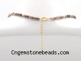 Details: Tiny beaded jewelry: 4mm faceted round tiny brown zebra jasper beaded necklace finished with brass lobster clasp. Item: GMN7228 Material: 4mm faceted brown zebra jasper beads & 7*12mm clasp (you can choose different clasp) #1/#2:Silver/Golden plated brass lobster clasps #3/#4:Silver/Golden plated brass lobster clasps with 2 inches extender chain Color: See image Length (inch): approx 20 inches (Not including 2 inches extender chain) Quantity Discount Pricing: 1 – 4: None 5 – 49: 95% 50 – 99: 90% 100+: 85% The listed price is for 1 piece necklace