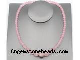 Details: Jewelry sets: 6mm - 12mm round rose quartz & 14mm zircon ball graduated beaded necklace finished with brass lobster clasp & bracelet set. Item: GMN7325 Material: Necklace: 6mm - 12mm rose quartz, 14mm zircon ball & 7*12mm brass lobster clasp (You can choose different zircon ball & clasp) Bracelet: 6mm - 12mm rose quartz & 14mm zircon ball (You can choose different zircon ball, but we will use the same color according to zircon ball on the necklace you choose) Color: See image Length (inch): Necklace length: Approx 18 inches (Default, Not including Tail Chain) You can choose 19 inches or 20 inches Bracelet length: You can choose 7 inches; 7.5 inches; 8 inches or 8.5 inches Quantity Discount Pricing: 1 – 4: None 5 – 49: 95% 50 – 99: 90% 100+: 85% The listed price is for 1 piece necklace, if you also like the bracelet, please add