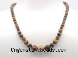 Details: Jewelry sets: 6mm - 12mm round yellow tiger eye & 14mm zircon ball graduated beaded necklace finished with brass lobster clasp & bracelet set. Item: GMN7331 Material: Necklace: 6mm - 12mm yellow tiger eye, 14mm zircon ball & 7*12mm brass lobster clasp (You can choose different zircon ball & clasp) Bracelet: 6mm - 12mm yellow tiger eye & 14mm zircon ball (You can choose different zircon ball, but we will use the same color according to zircon ball on the necklace you choose) Color: See image Length (inch): Necklace length: Approx 18 inches (Default, Not including Tail Chain) You can choose 19 inches or 20 inches Bracelet length: You can choose 7 inches; 7.5 inches; 8 inches or 8.5 inches Quantity Discount Pricing: 1 – 4: None 5 – 49: 95% 50 – 99: 90% 100+: 85% The listed price is for 1 piece necklace, if you also like the bracelet, please add