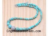 Details: Jewelry sets: 6mm - 12mm round blue sea sediment jasper & 14mm zircon ball graduated beaded necklace finished with brass lobster clasp & bracelet set . Item: GMN7349 Material: Necklace: 6mm - 12mm blue sea sediment jasper, 14mm zircon ball & 7*12mm brass lobster clasp (You can choose different zircon ball & clasp) Bracelet: 6mm - 12mm blue sea sediment jasper & 14mm zircon ball (You can choose different zircon ball, but we will use the same color according to zircon ball on the necklace you choose) Color: See image Length (inch): Necklace length: Approx 18 inches (Default, Not including Tail Chain) You can choose 19 inches or 20 inches