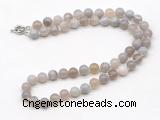 Details: Non-knotted/Hand-knotted gemstone necklaces: 8mm/10mm round grey banded agate gemstone beaded necklace finished with 8mm brass spring ring clasps (you can choose different size, style & clasp)