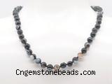 Details: Non-knotted/Hand-knotted gemstone necklaces: 8mm/10mm round black banded agate gemstone beaded necklace finished with 8mm brass spring ring clasps (you can choose different size, style & clasp)