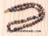 Details: Non-knotted/Hand-knotted gemstone necklaces: 8mm/10mm round brecciated jasper gemstone beaded necklace finished with 8mm brass spring ring clasps (you can choose different size, style & clasp)