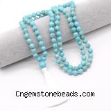 Details: Hand-knotted turquoise mala necklaces: 27/54/108 8mm/10mm round blue howlite beads & 12mm blue howlite guru bead with satin tassel