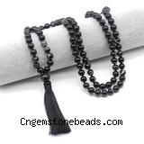 Details: Hand-knotted agate mala necklaces: 27/54/108 8mm/10mm round black banded agate beads & 12mm banded agate guru bead with satin tassel