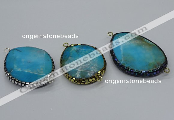 Details: Gemstone connector jewelry: 35*45mm - 40*50mm freeform agate gemstone with platinum/abalone shell alloy connectors wholesale Item: NGC1741 Material: agate Shape: freeform Color: See image Size (mm): approx 35*45mm - 40*50mm (Hole: approx 3mm) Quantity Discount Pricing: 1 – 4: None 5 – 49: 95% 50 – 99: 90% 100+: 85% The listed price is for one connector The pictures of this item on our website are just a reference to tell you that they are in mixed colors and/or mixed shapes. However, the colors or shapes we get from the factory may vary each time, so we will send your orders randomly according to our stock. |