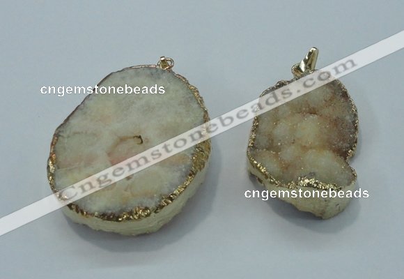 Details: Gemstone pendant jewelry: 25*35mm - 35*45mm freeform druzy agate gemstone beads pendant wholesale Item: NGP1024 Material: agate Shape: freeform Color: See image Size (mm): approx 25*35mm - 35*45mm (Hole: approx 6*8mm) Quantity Discount Pricing: 1 – 4: None 5 – 49: 95% 50 – 99: 90% 100+: 85% The listed price is for one pendant The pictures of this item on our website are just a reference to tell you that they are in mixed colors and/or mixed shapes. However, the colors or shapes we get from the factory may vary each time, so we will send your orders randomly according to our stock. |