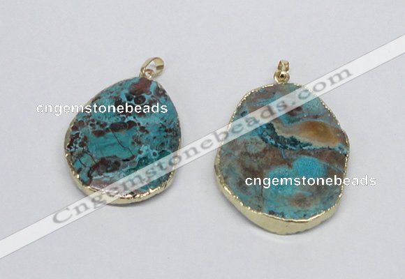 Details: Gemstone pendant jewelry: 35*45mm - 40*50mm freeform ocean agate gemstone with brass setting pendants wholesale Item: NGP2687 Material: ocean agate Shape: freeform Color: See image Size (mm): approx 35*45mm - 40*50mm (Hole: approx 5mm) Quantity Discount Pricing: 1 – 4: None 5 – 49: 95% 50 – 99: 90% 100+: 85% The listed price is for one pendant The pictures of this item on our website are just a reference to tell you that they are in mixed colors and/or mixed shapes. However, the colors or shapes we get from the factory may vary each time, so we will send your orders randomly according to our stock. |