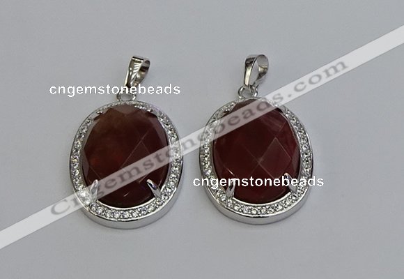Gemstone pendant jewelry: 25*30mm oval red rabbit hair gemstone with rhinestone brass setting pendants wholesale